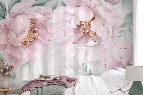 Fototapetai Rožinių bijūnų imitacija akvarele Nr. w03932v2
