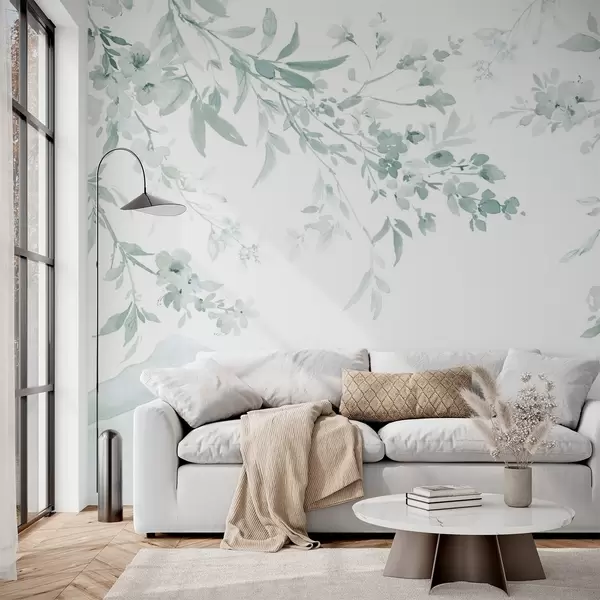 Fototapetai Žydinčios šakos, akvarelės imitacija, žali atspalviai Nr. w03935v3