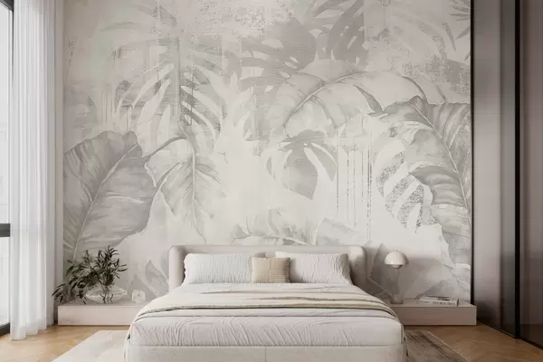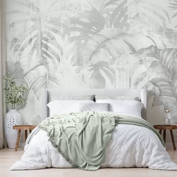 Fototapetai Atogrąžų lapai grunge stiliumi, vienspalviai atspalviai Nr. w03956v1