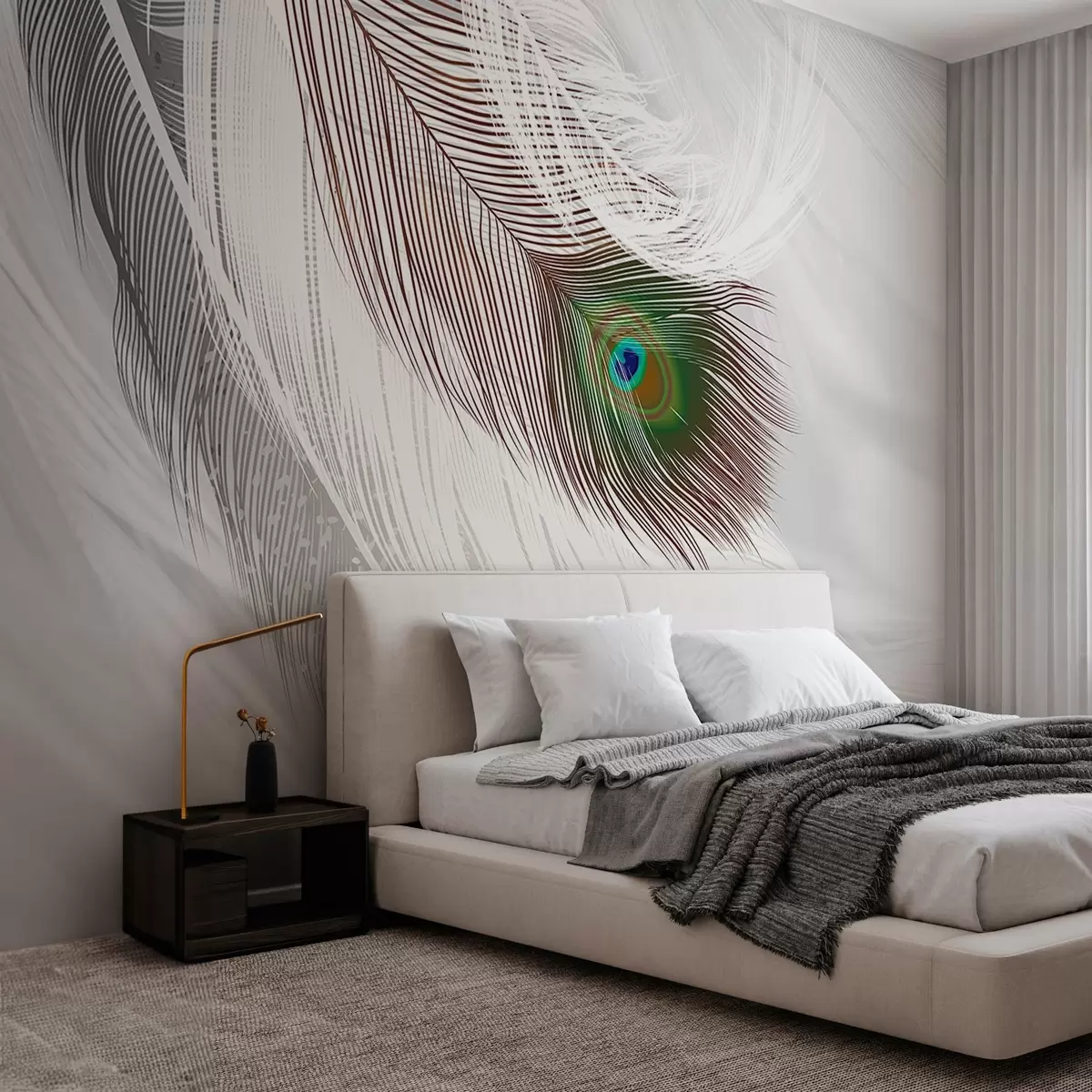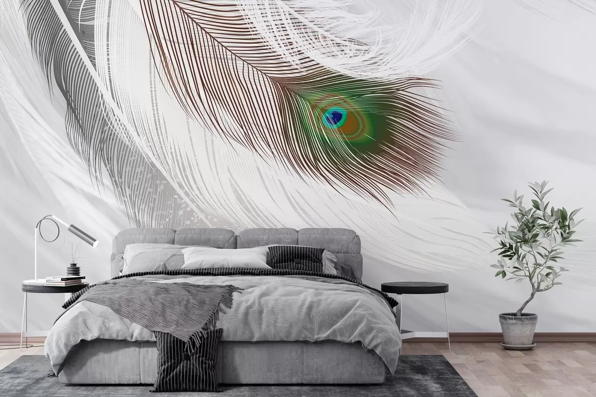Fototapetai didelė povo plunksna tarp plunksnų Nr. w03961