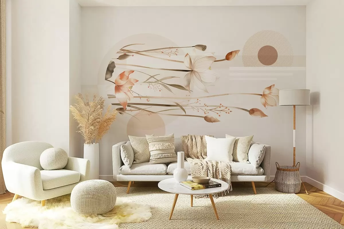 Fototapetai pastelinės lelijos ir boho geometrija Nr. w03964