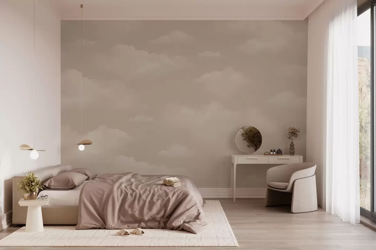 Fototapetai Kreminiai debesys šviesiai smėlio spalvos fone Nr. w03994