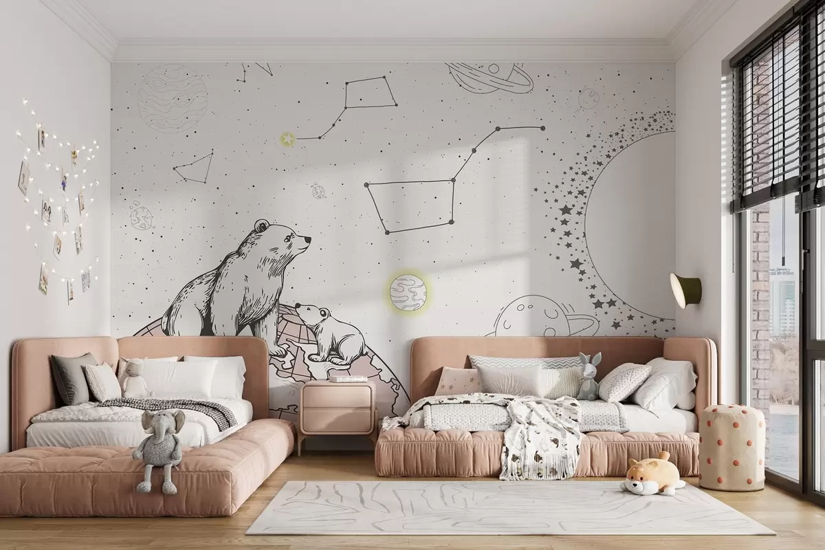 Fototapetai Meškos ir žvaigždės rudame fone, astronomijos tema Nr. w04002v2