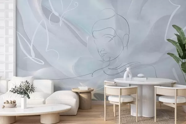 Fototapetai Gėlių abstrakcija su Budos linijos piešiniu, mėlynos spalvos Nr. w04004v1