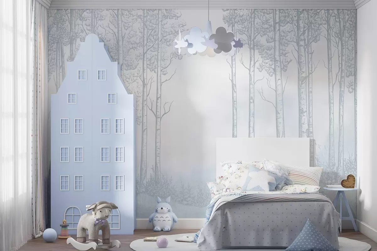 Fototapetai Miškas su beržais, minimalizmas, gamta, mėlyna spalvų paletė Nr. w04009