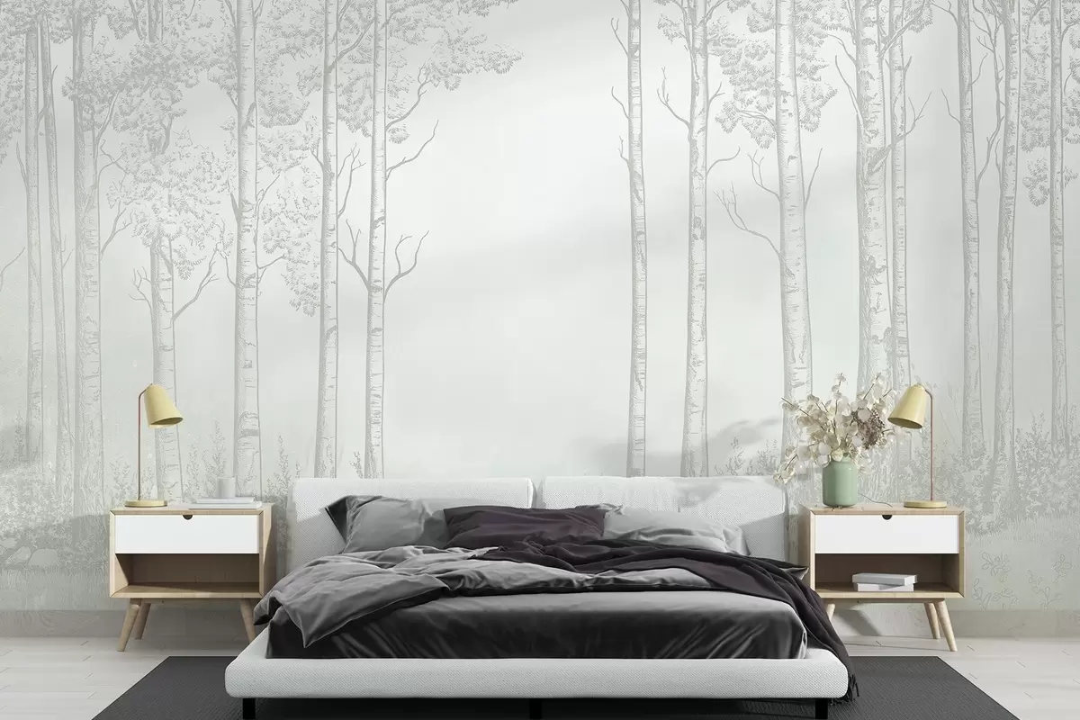 Fototapetai Miškas su beržais, minimalizmas, gamta, žalios spalvos paletė Nr. w04009v1