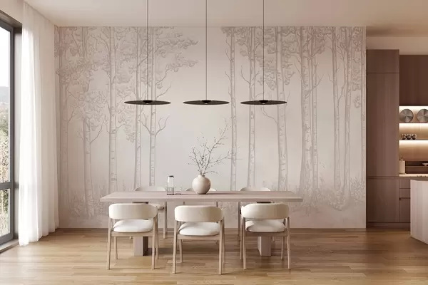 Fototapetai Miškas su beržais, minimalizmas, gamta, smėlio spalvos paletė Nr. w04009v3