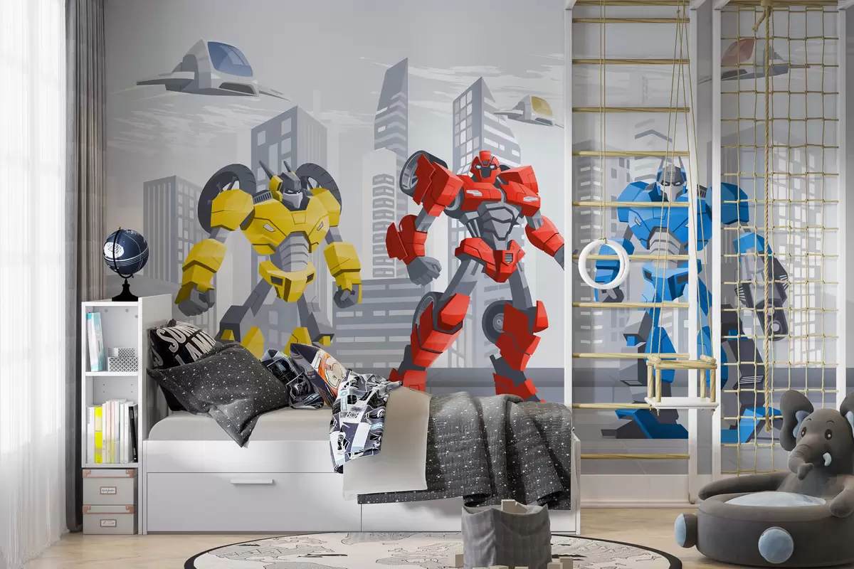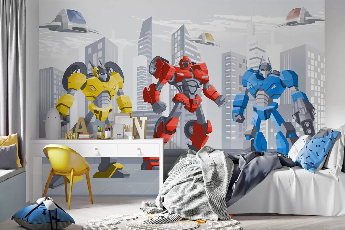 Fototapetai Robotai transformeriai nespalvoto miesto fone Nr. w04012
