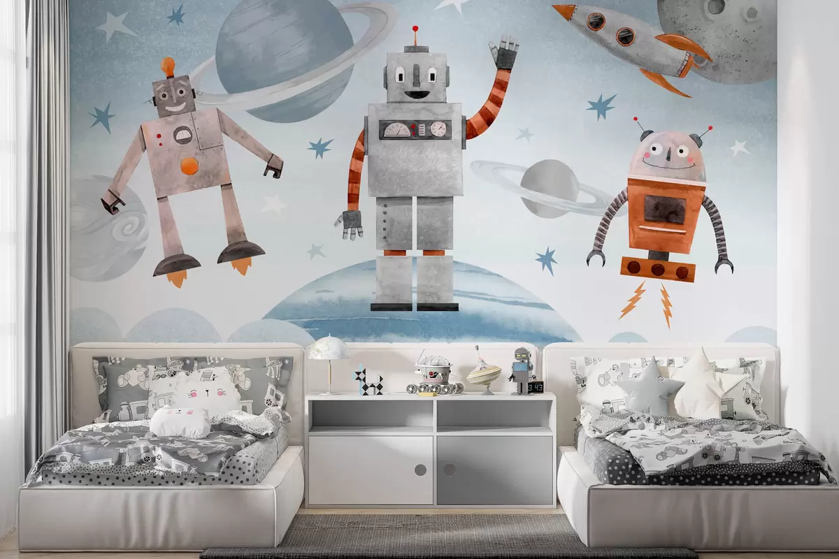 Fototapetai Robotai kosmose akvarelės stiliumi Nr. w04016