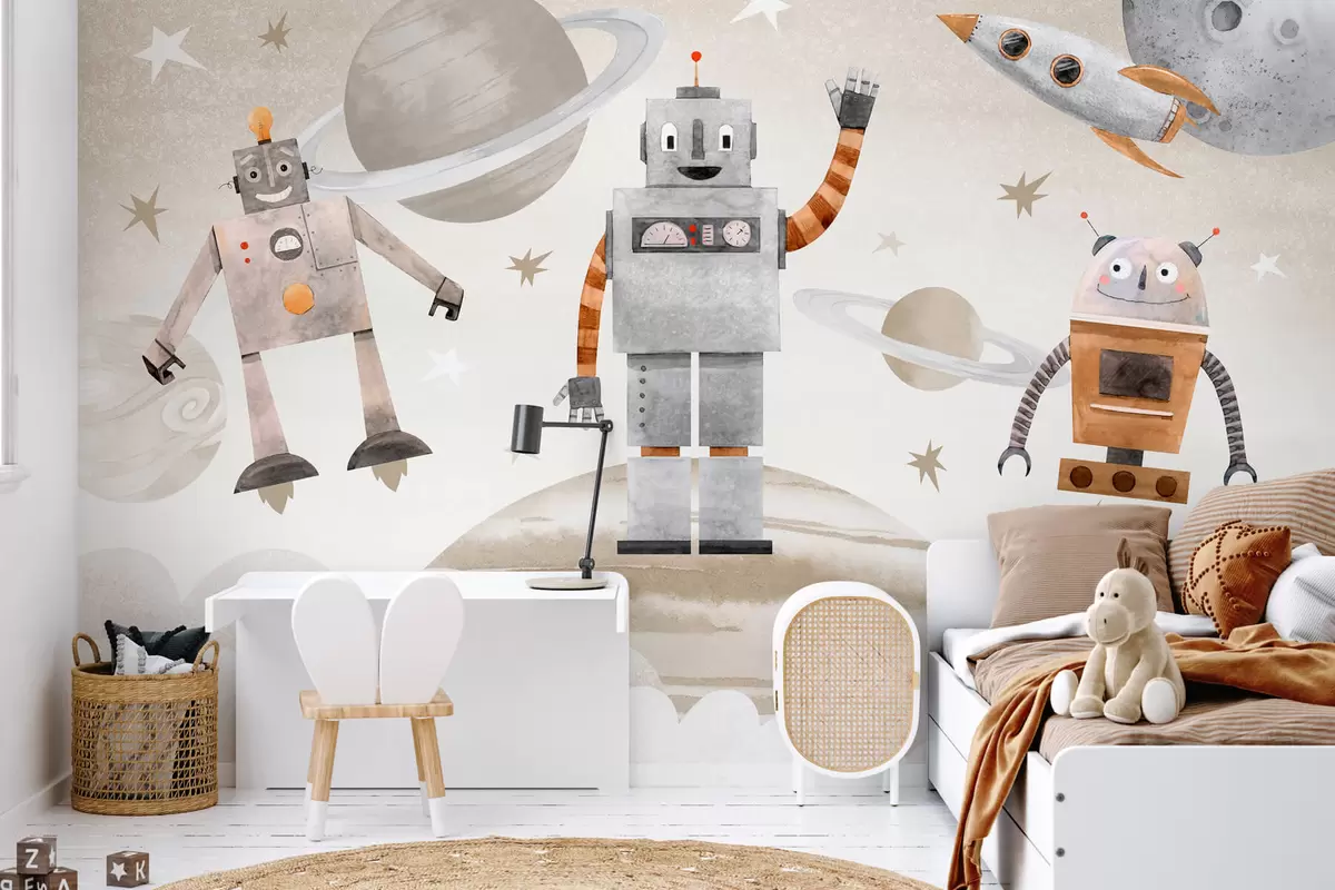 Fototapetai Robotai kosmose akvarelės stiliumi Nr. w04016v1