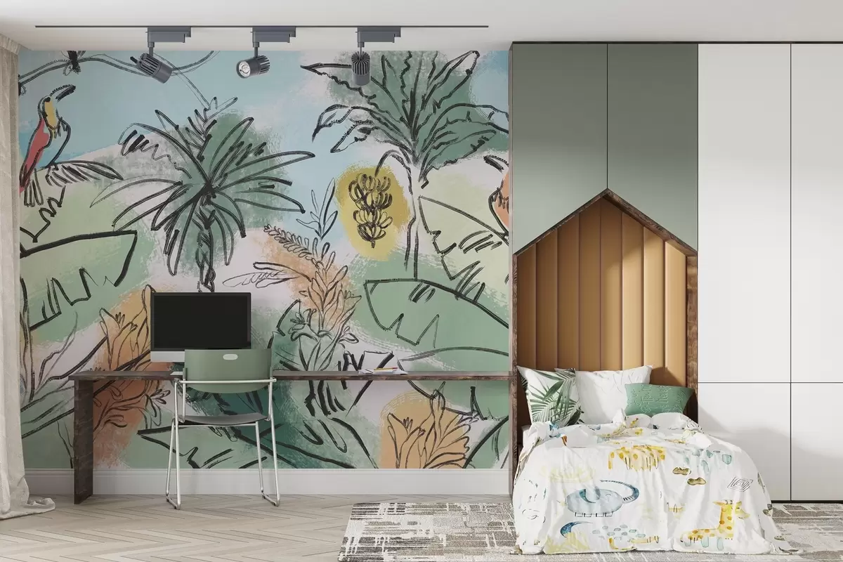 Fototapetai Atogrąžų raštas su papūgomis, sodrios spalvos, tropikai Nr. w04019