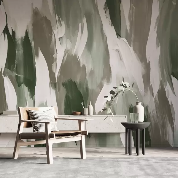 Fototapetai Abstrakti teptuko potėpių kompozicija, kurioje vyrauja žemės žalumo, rausvi atspalviai ir dramblio kaulo spalva, primenanti gamtos įkvėptą ritmą Nr. w04035v1