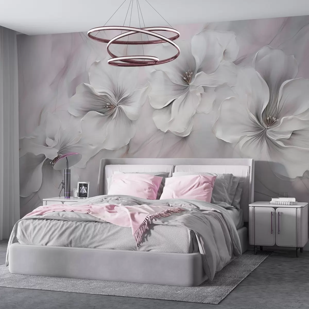 Fototapetai Aliejinės tapybos gėlės rausvame fone Nr. w04047v1