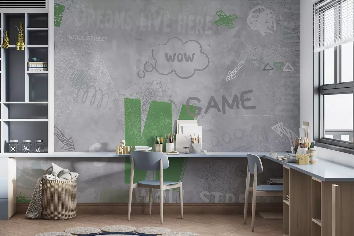 Fototapetai Gatvės meno dizainas su žalios spalvos užrašu betoninės sienos fone Nr. w04056v2