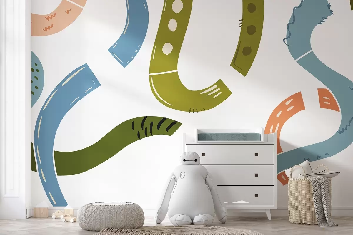 Fototapetai Abstraktūs piešiniai, nepilnamečių, piešiniai, žalia, mėlyna, rožinė Nr. w04066v2