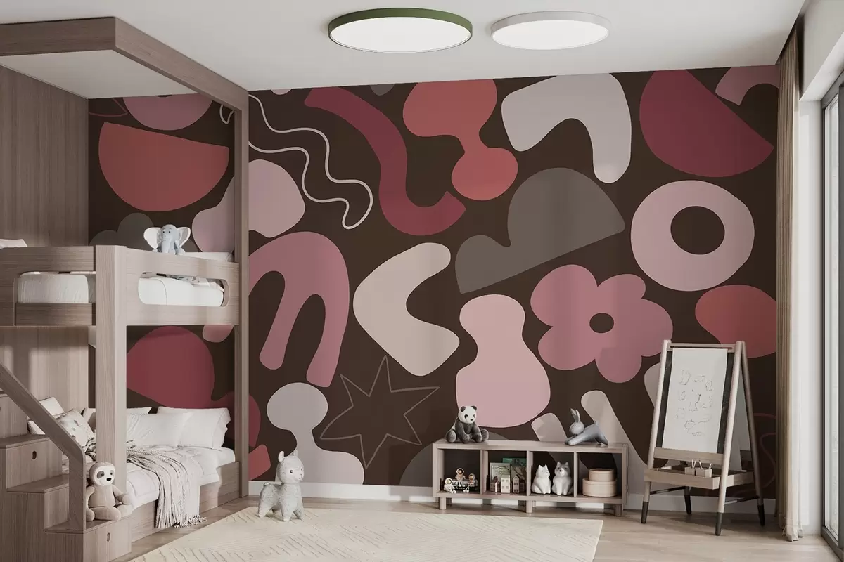 Fototapetai Geometrinės figūros, nepilnametis, abstrakcija, tamsiai bordo spalvos fonas Nr. w04067