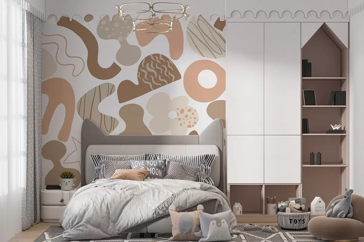 Fototapetai Geometrinės figūros su makaronais piešinys, nepilnamečių, smėlio spalvos paletė Nr. w04068