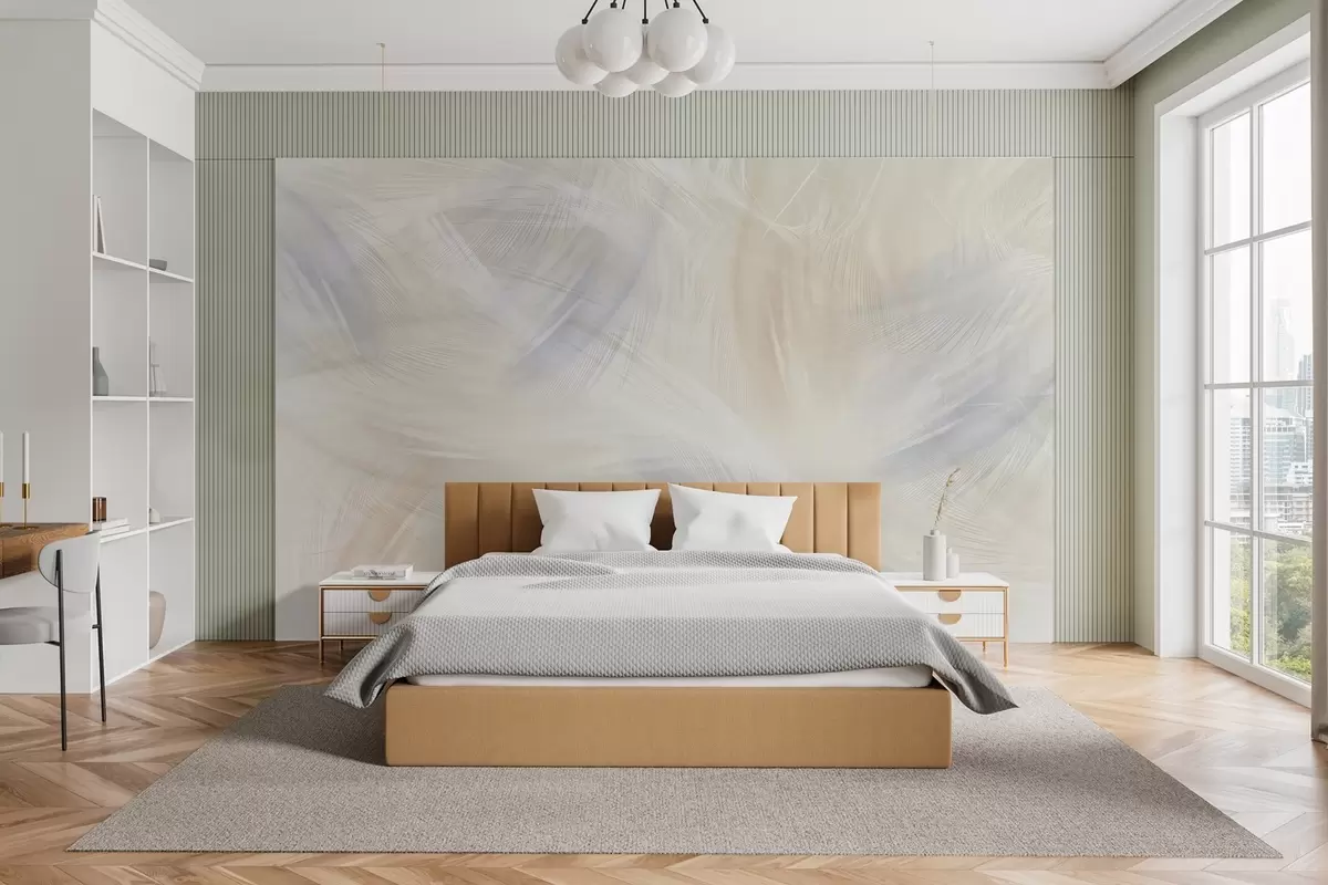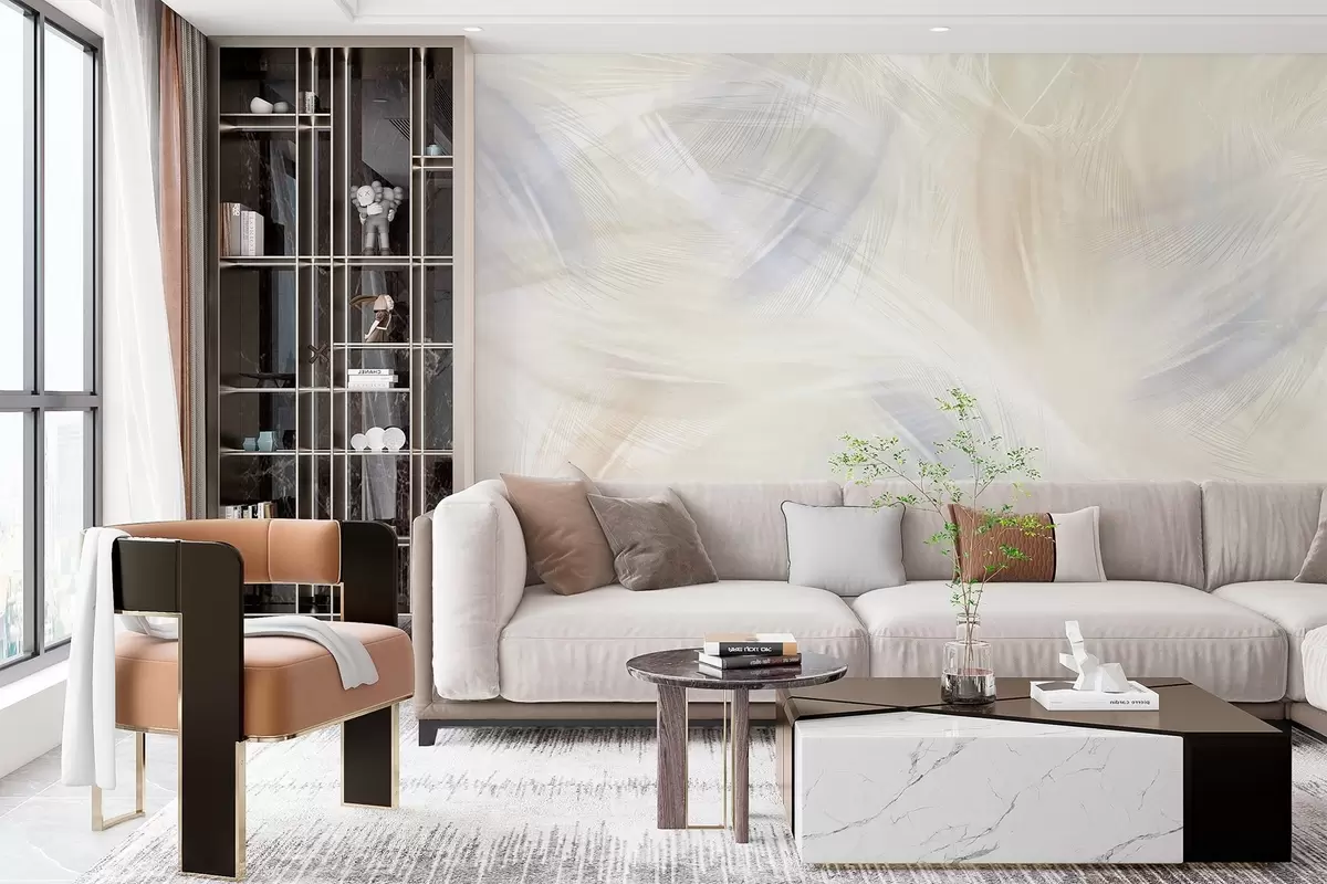 Fototapetai erdvios mėlynos ir smėlio atspalvių plunksnos Nr. w04071v2