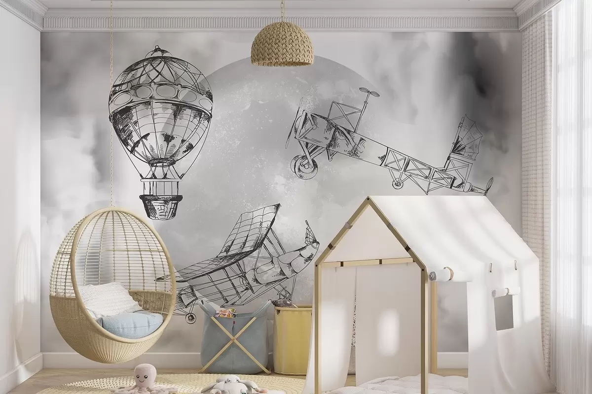 Fototapetai Retro lėktuvai mėnulio ir debesų fone Nr. w04085