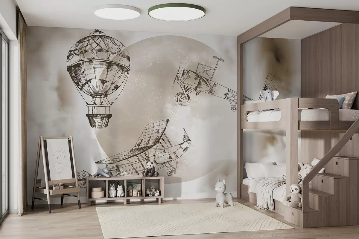 Fototapetai Retro lėktuvai mėnulio ir debesų fone Nr. w04085v1