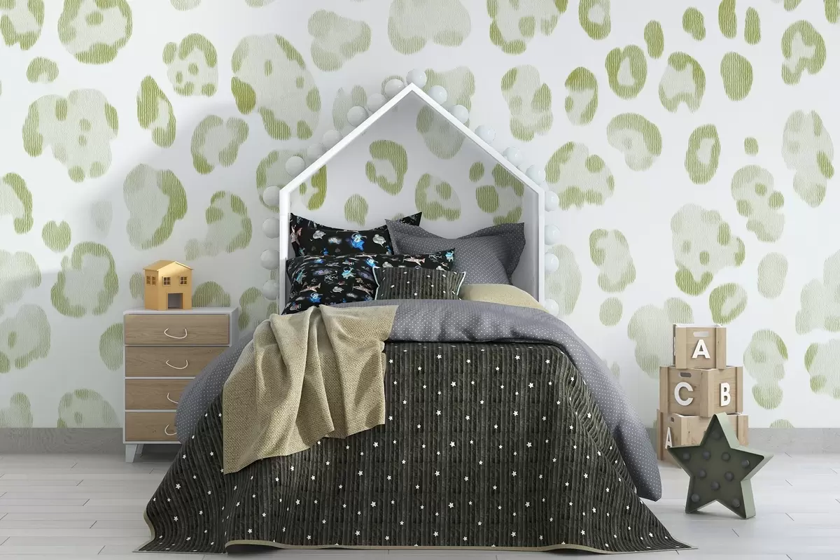 Fototapetai Leopardo raštas, vilnos tekstūra, žalia spalva Nr. w04112v3
