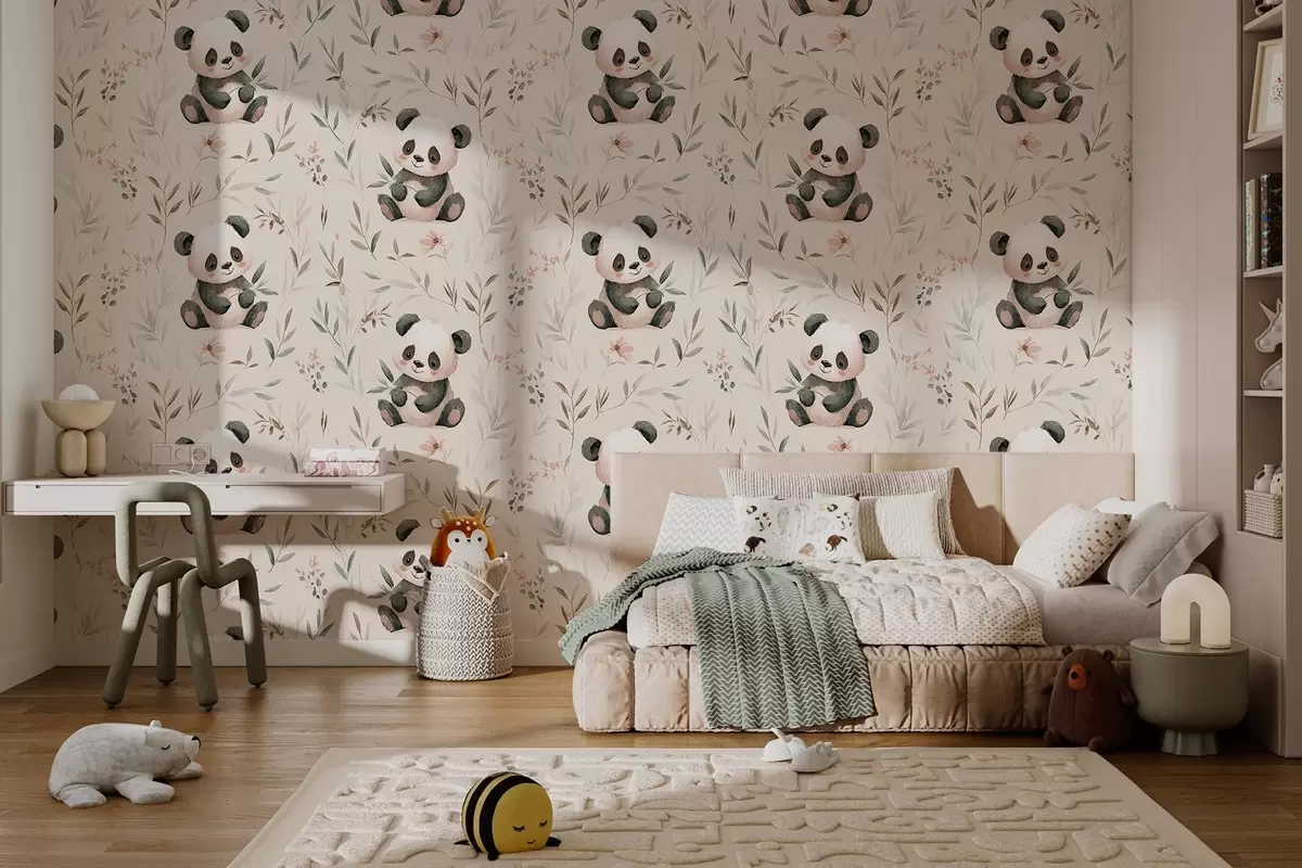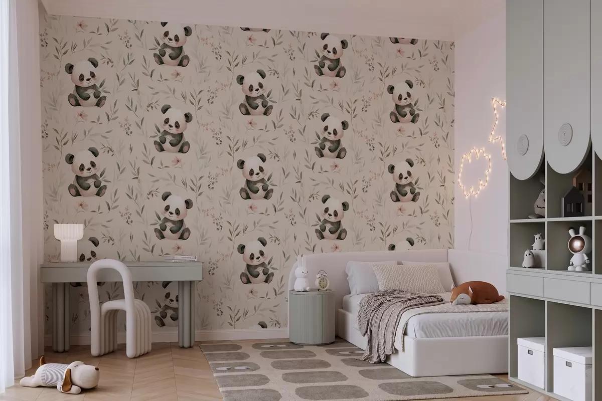Fototapetai mielos kūdikių stiliaus pandos tarp augalų Nr. w04170