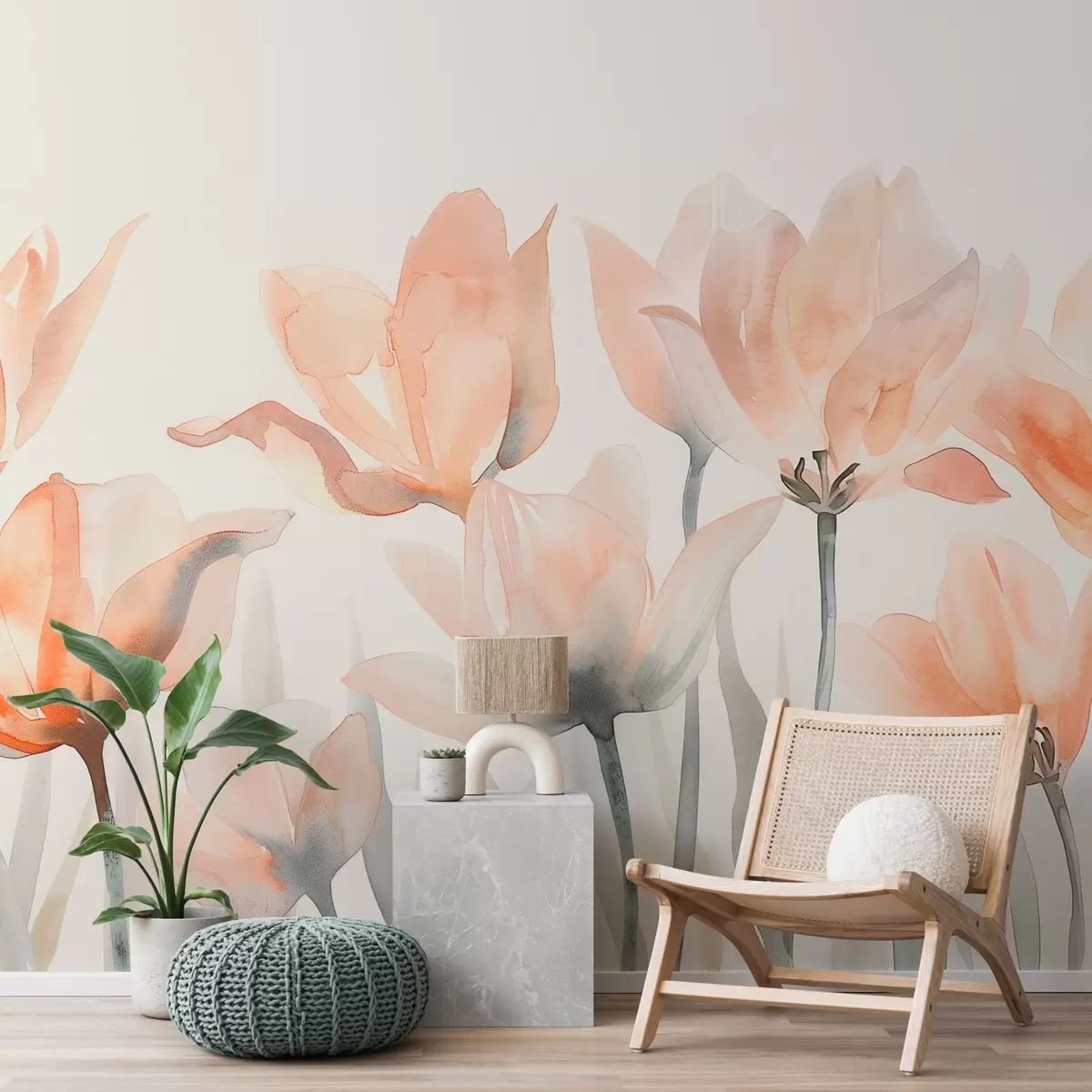 Fototapetai šviežios akvarelės tulpės, augančios iš apačios Nr. w04204