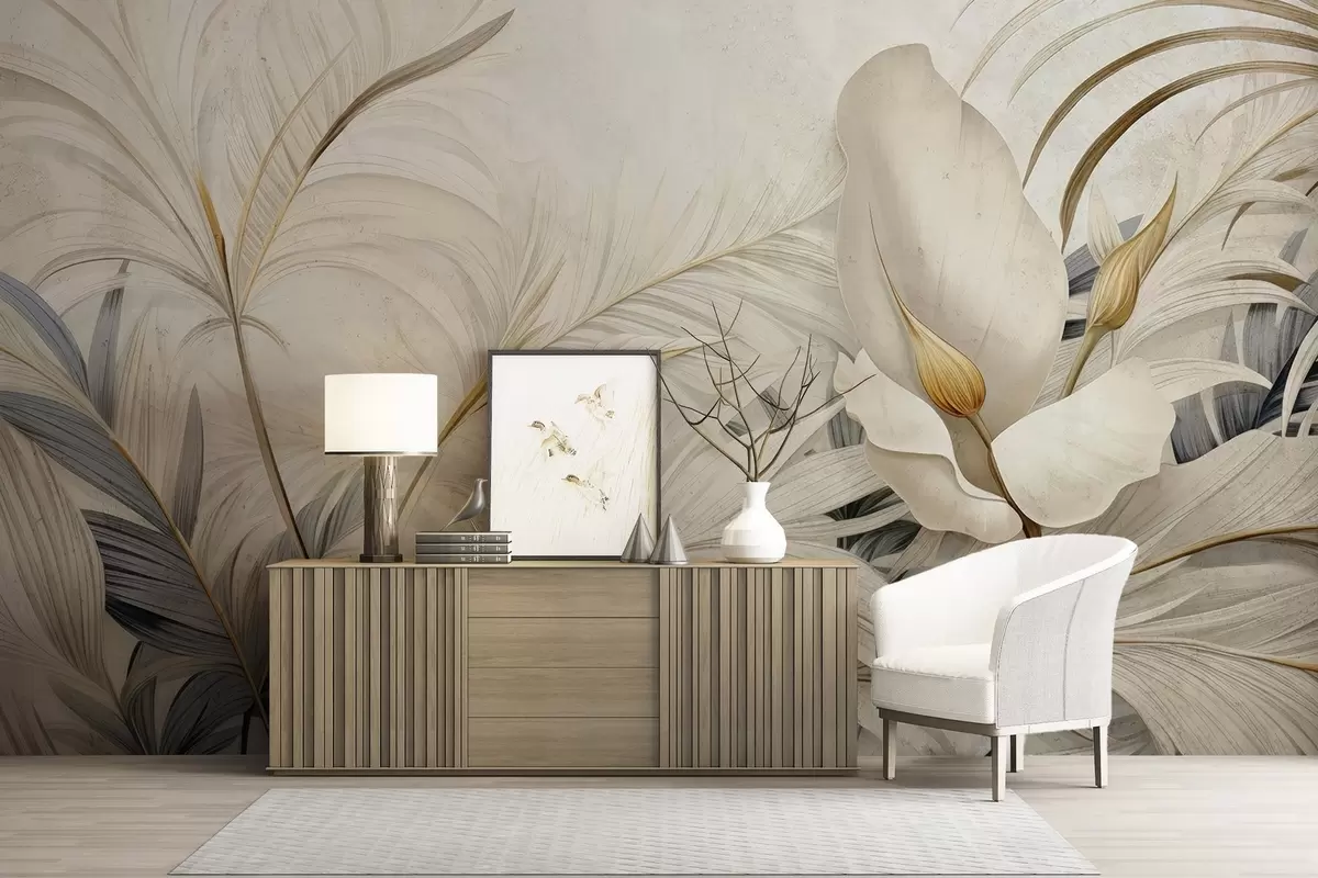 Fototapetai Atogrąžų augalai ant betoninės sienos Nr. w04249