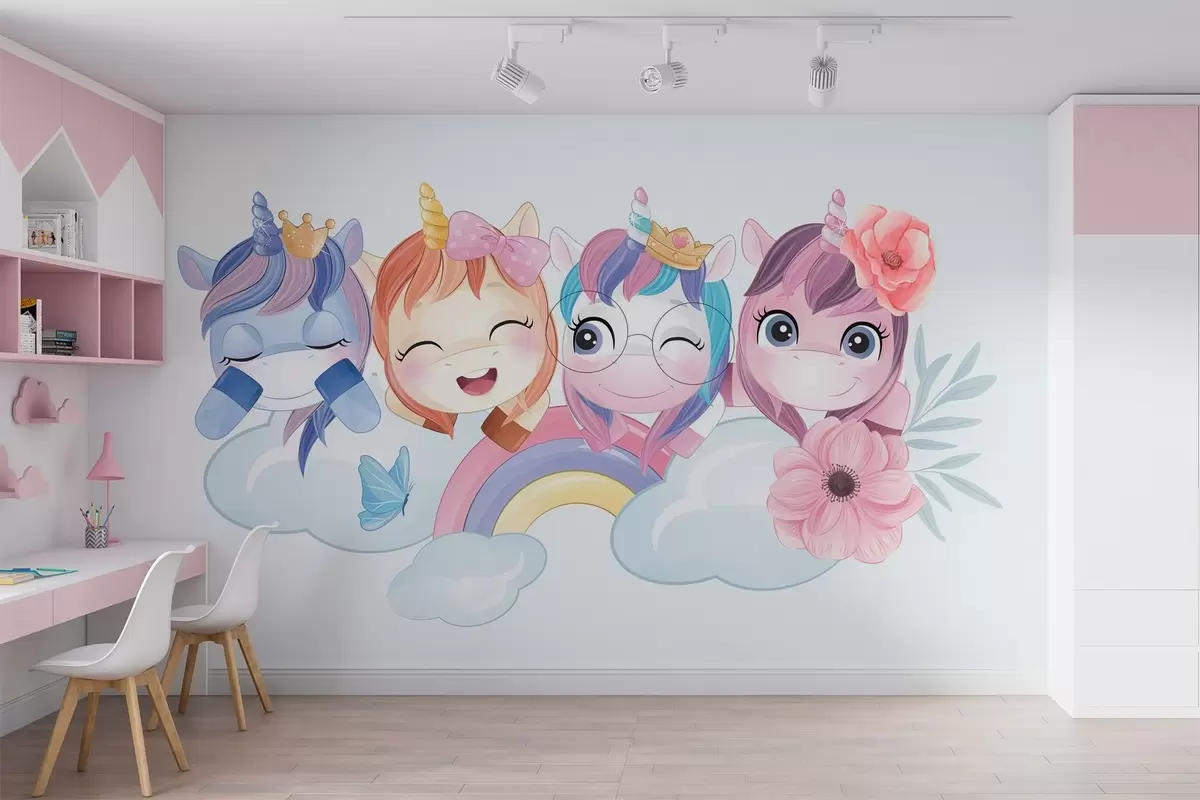 Fototapetai Mieli vienaragiai tarp debesų ir vaivorykščių Nr. w04298