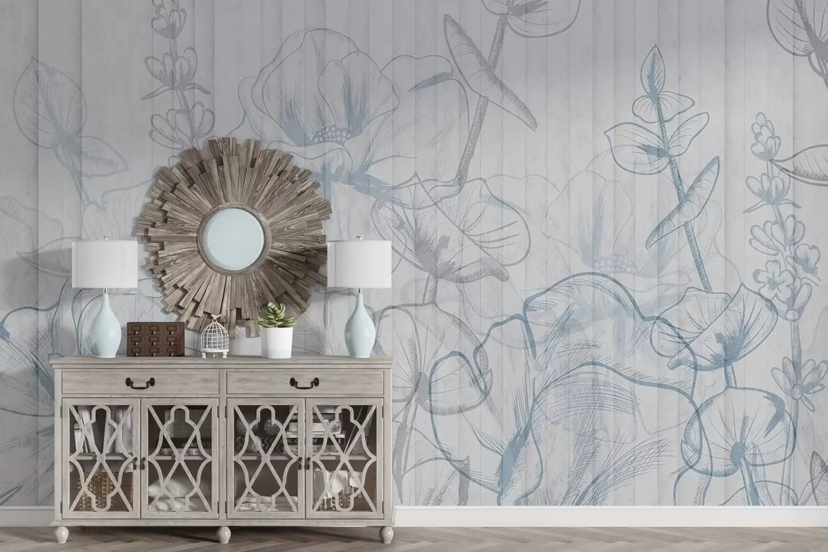 Fototapetai Augalų siluetai betoniniame fone Nr. w04327v1