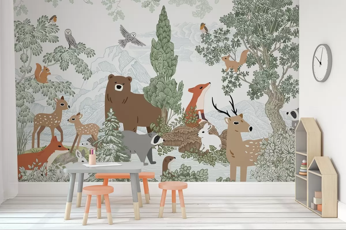 Fototapetai Gyvūnai ir paukščiai miške Nr. w04383