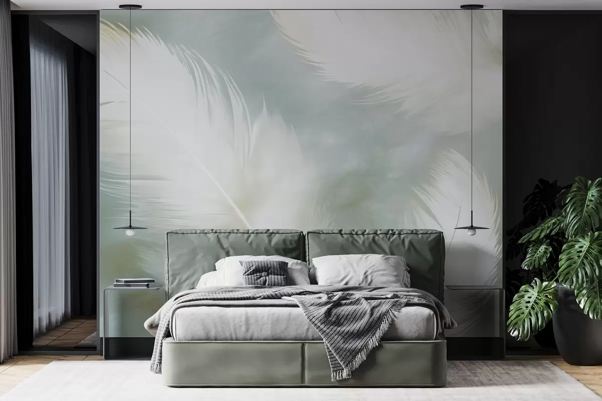 Fototapetai Švelnios baltos plunksnos švelniame mėtų fone Nr. w04399