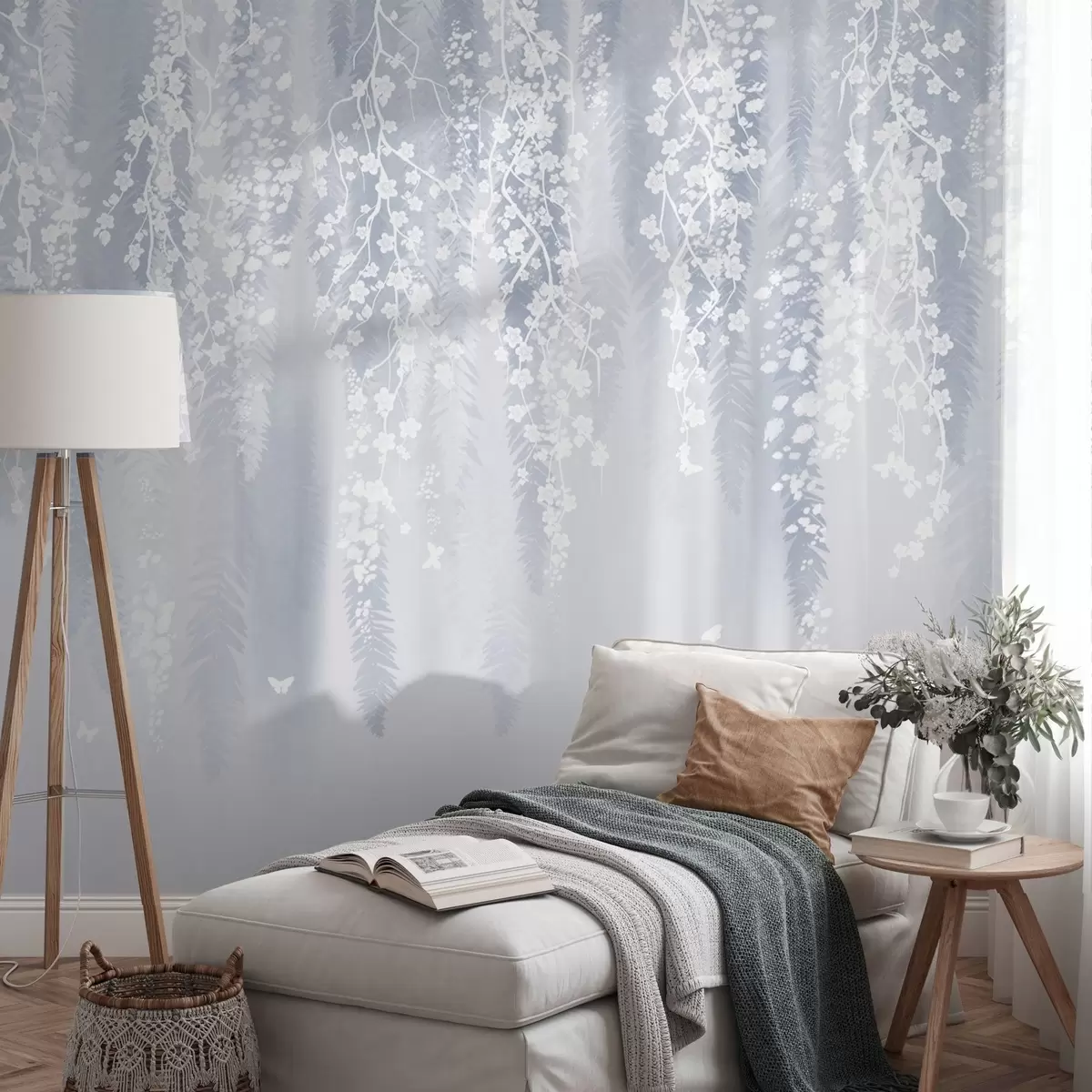 Fototapetai Vėsi mėlyna šakų su baltomis gėlėmis versija w04417v2