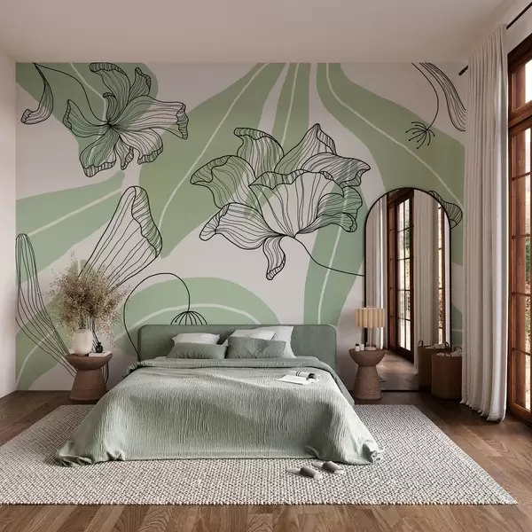 Fototapetai abstrakčios lapų ir gėlių kompozicijos žalios spalvos tonais Nr. w04499v1