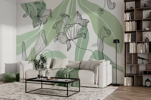 Fototapetai abstrakčios lapų ir gėlių kompozicijos žalios spalvos tonais Nr. w04499v1