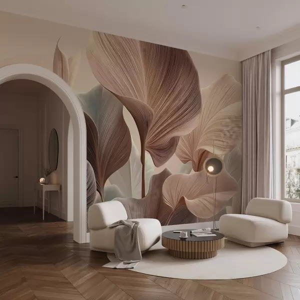 Fototapetai Elegantiški lapai šiltų smėlio atspalvių Nr. w04549v1