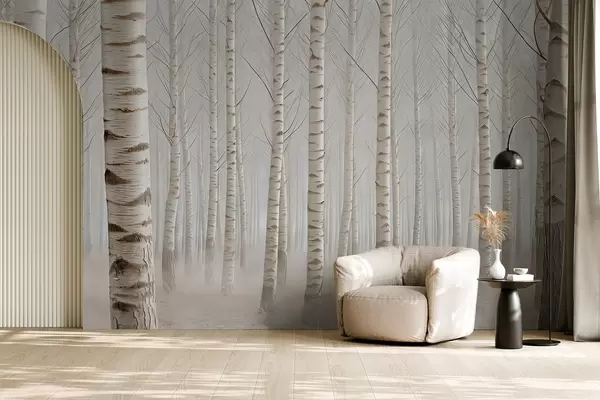 Fototapetai Beržų miškas rūke, šviesus minimalizmas Nr. w04574