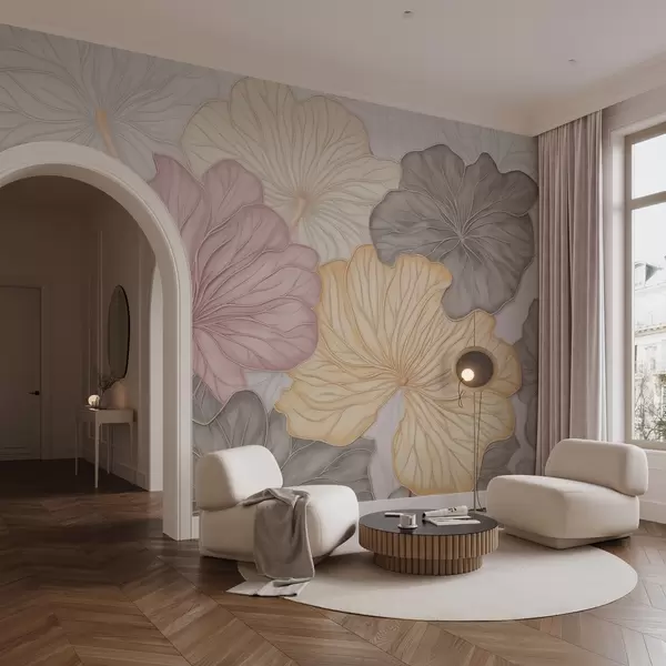 Fototapetai Didelės pastelinės spalvos lapai su smulkiomis gyslomis Nr. w04612