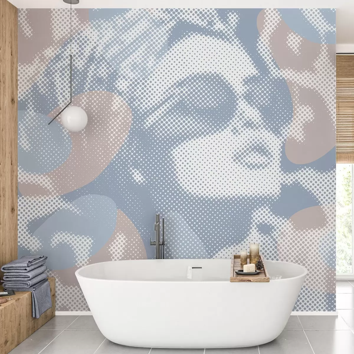 Fototapetai moteris ant leopardo fono, nutapyta taškuotu stiliumi mėlynų atspalvių Nr. w04630v1