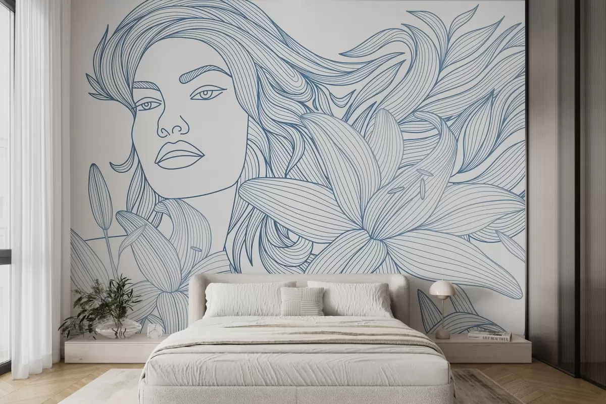 Fototapetai Merginos portretas tarp mėlynų lelijų atspalvių Nr. w04689v2