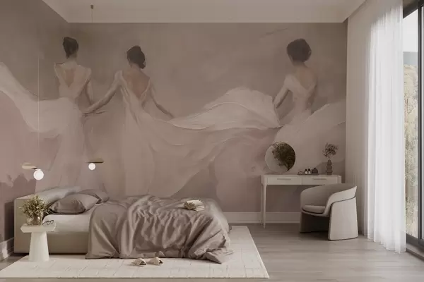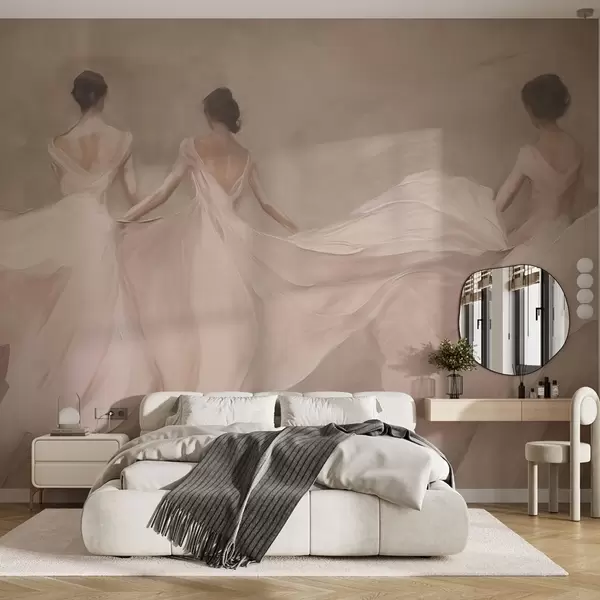 Fototapetai Trys moterys rožinėmis suknelėmis, plaukiojančia medžiaga, švelnumu Nr. w04709