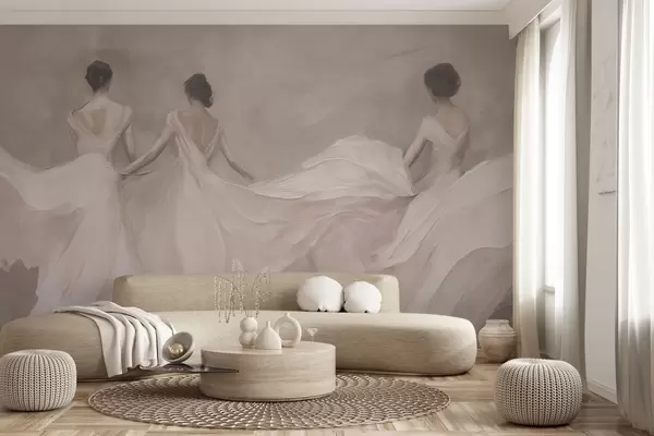 Fototapetai Trys moterys rožinėmis suknelėmis, plaukiojančia medžiaga, švelnumu Nr. w04709