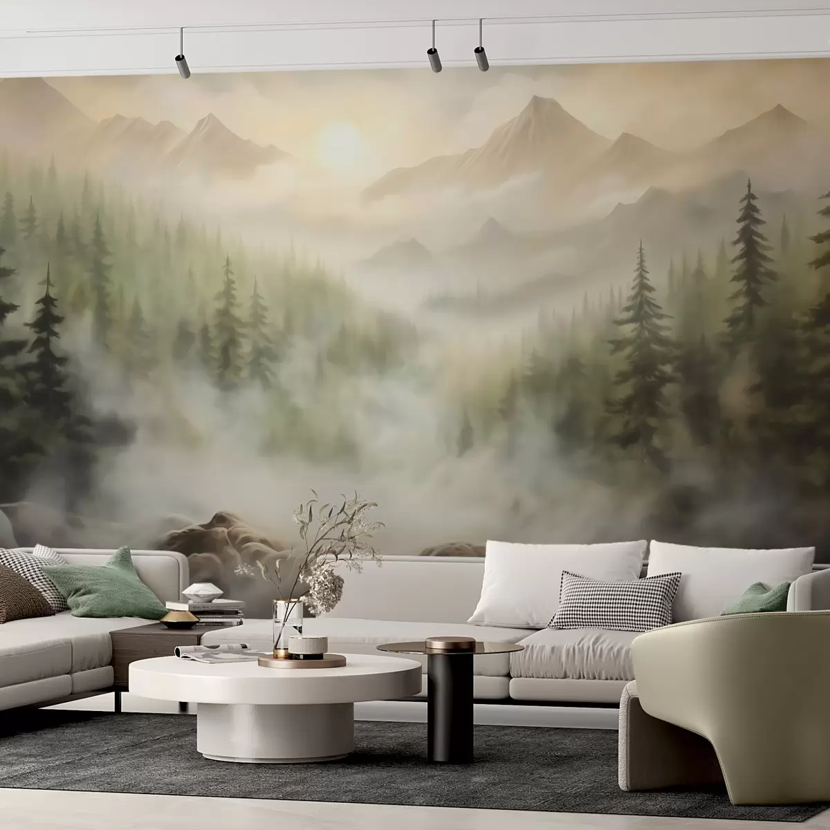 Fototapetai Miškas rūke kalnų fone Nr. w04730
