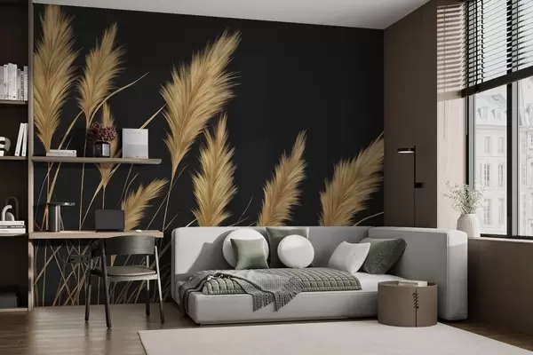 Fototapetai Pūkuotos kviečių varpos tamsiame fone Nr. w04734