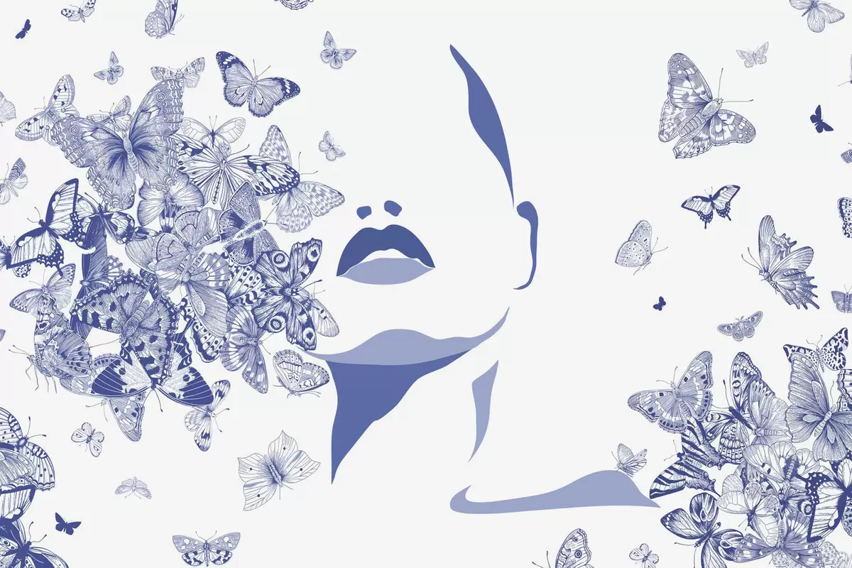 Fototapetai Veido siluetas tarp drugelių Nr. w04778v1