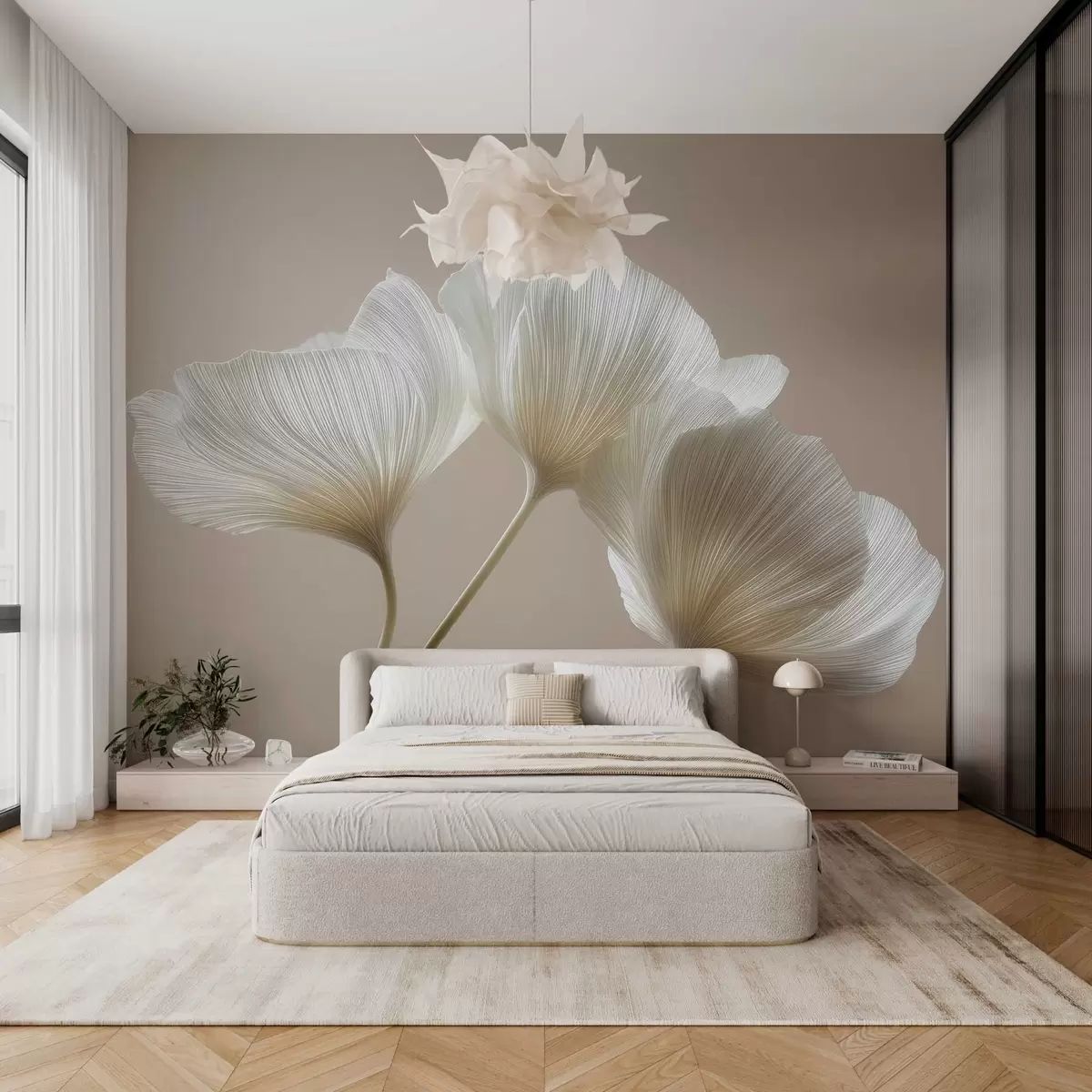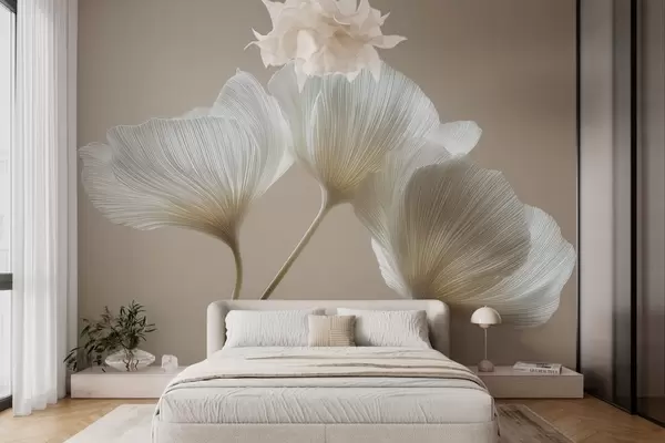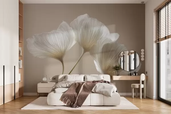 Fototapetai trys subtilūs žiedai ant smėlio spalvos fono Nr. w04810