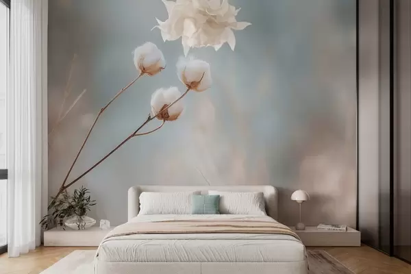 Fototapetai trys medvilnės žiedai ant neryškaus fono Nr. w04820