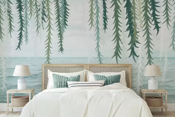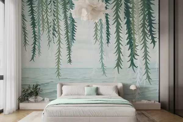 Fototapetai Subtilūs vynmedžiai, kabančios virš vandens, akvarelės stiliumi Nr. w04830