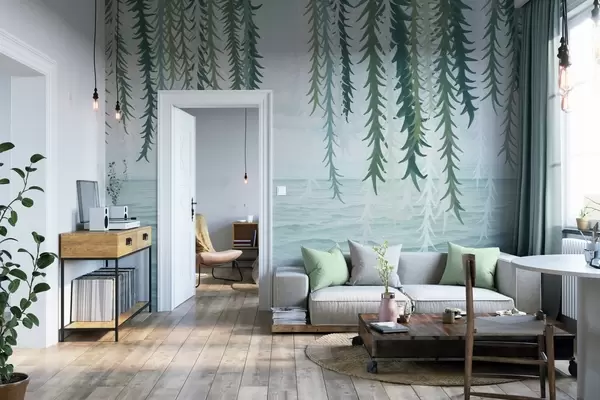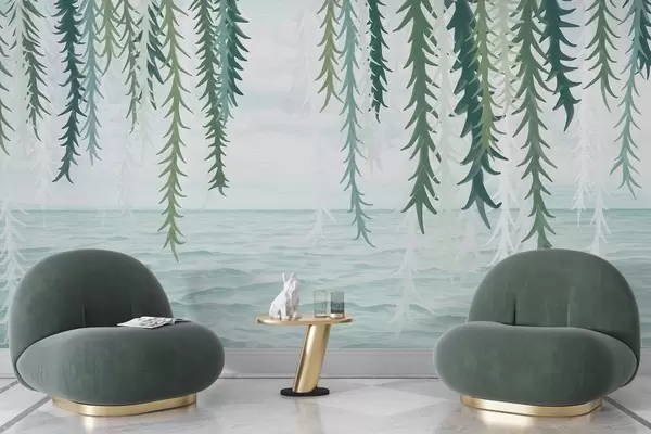 Fototapetai Subtilūs vynmedžiai, kabančios virš vandens, akvarelės stiliumi Nr. w04830