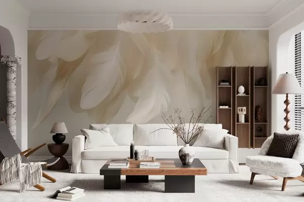 Fototapetai Turtingos ir subtilios kabančios plunksnos raminančiais atspalviais Nr. w04842